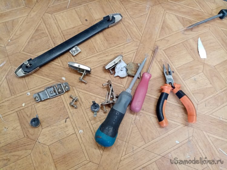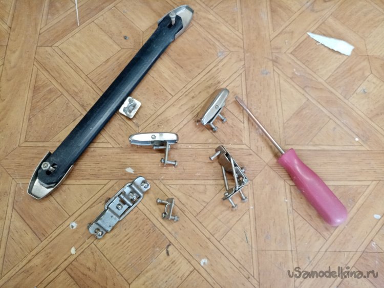 Для дальнейшей работы ящик нужно разобрать. Стараюсь нежно снимать элементы фурнитуры. Если чего сломается, заменить будет нечем.