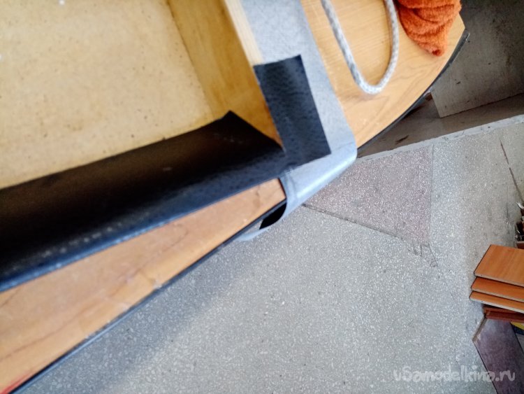 Затем перехожу на борта. Разрезаю обшивку на углах и привариваю её к борту, загибая на внутреннюю сторону.