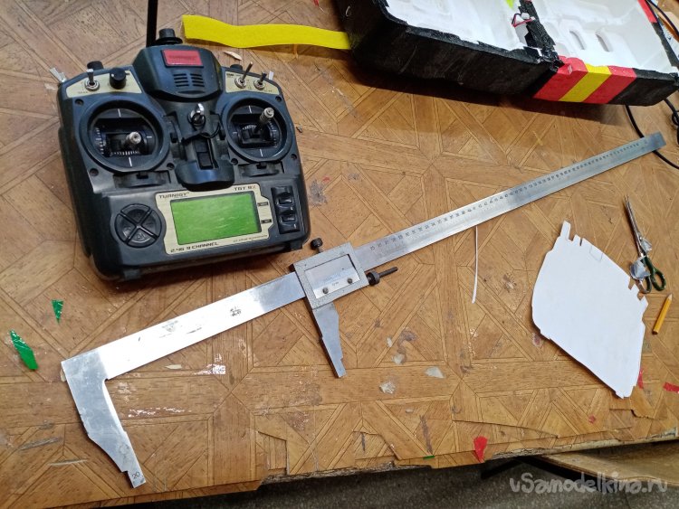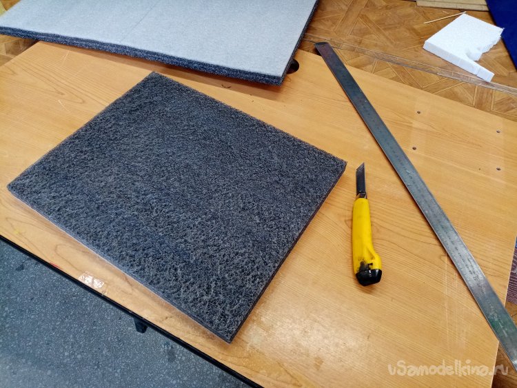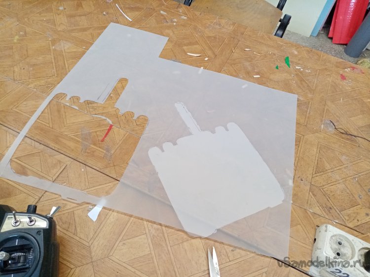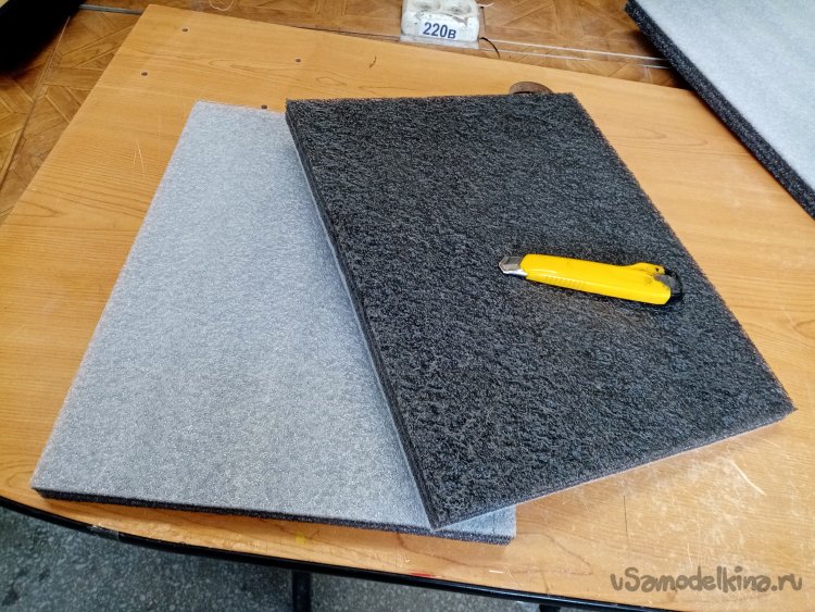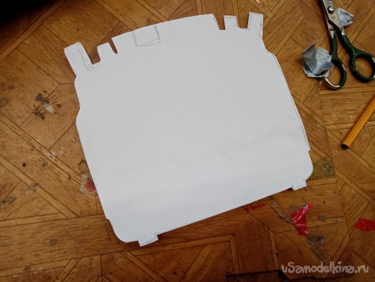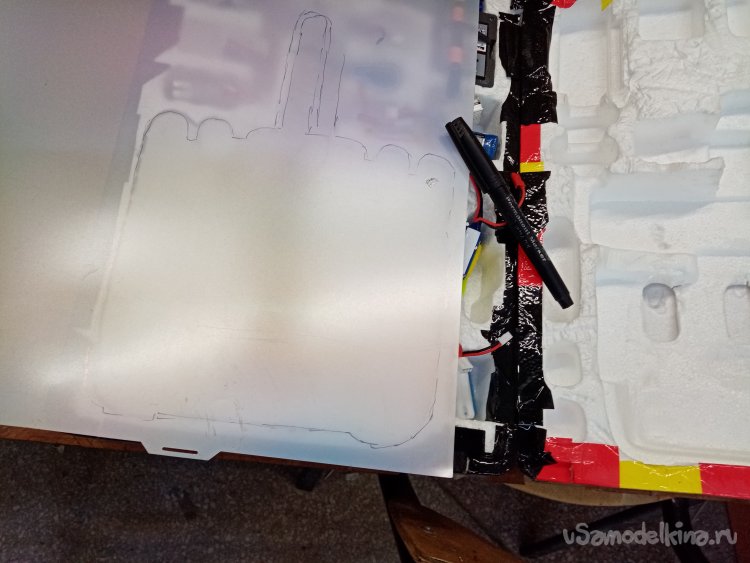 Но поскольку планирую вырезать отверстие в поролоне при помощи раскаленной струной. Пластик не подходит для этой операции. Вырезаю шаблон из полукартона.