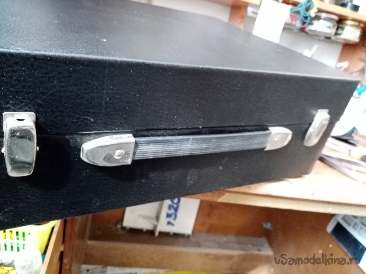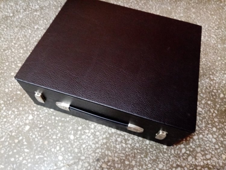 Поскольку не удалось качественно приклеить заднюю стенку. Придется полностью перетягивать весь чемоданчик. В хозяйственном магазине закупил немного материала слегка напоминающего коленкор.