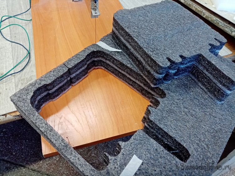 Для внутренней фиксации элементов закуплена такая достаточно толстая штука. Весьма жесткий упаковочный поролон. Конструкция слоеная. Склеена или сварена из нескольких слоев. Толщина в 30 мм.