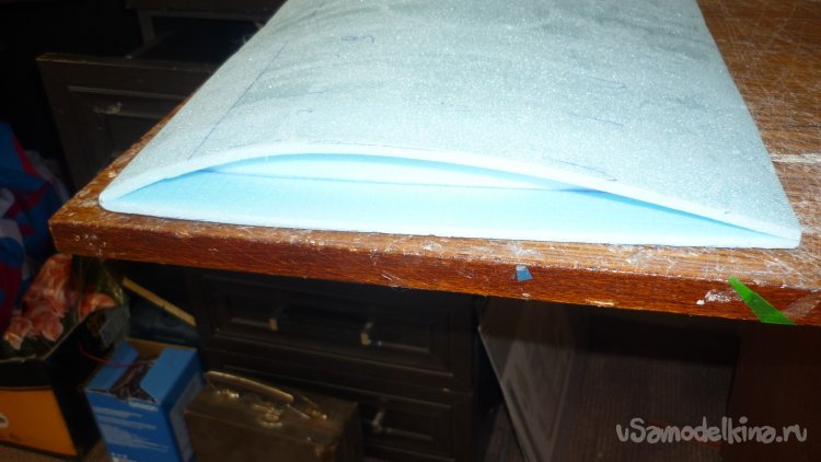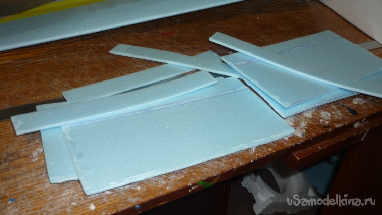 Модель делаю из простой, листовой подложки под ламинат размером 1000 х 500 х 5 мм, голубого цвета.