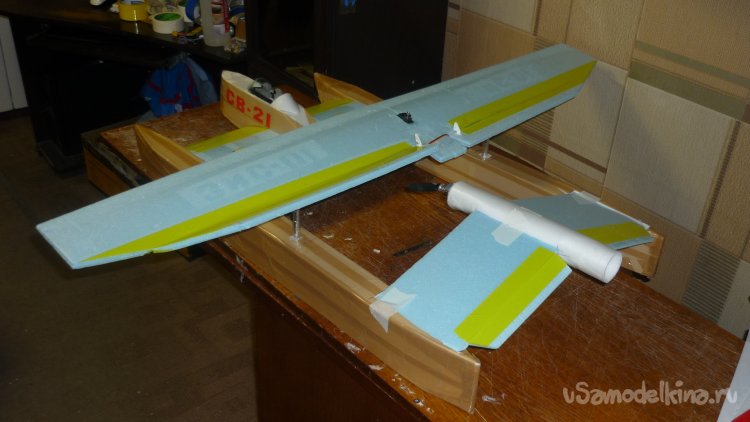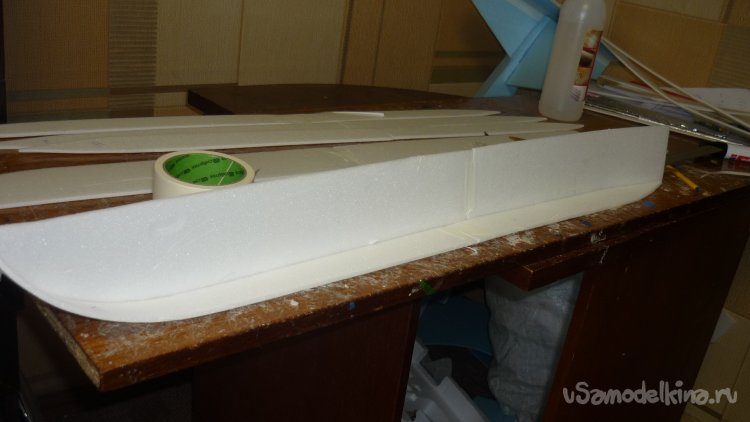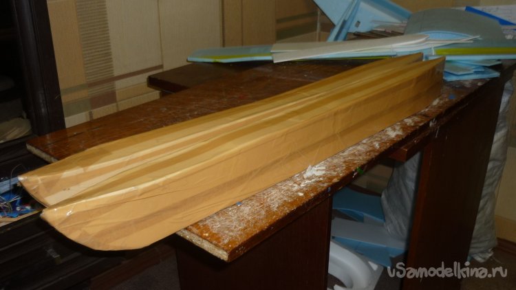 Подогнал готовые крылья под нужный размер. Это нижнее крыло, на которое будет монтироваться фюзеляж.