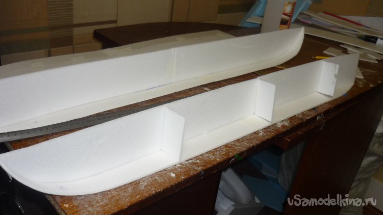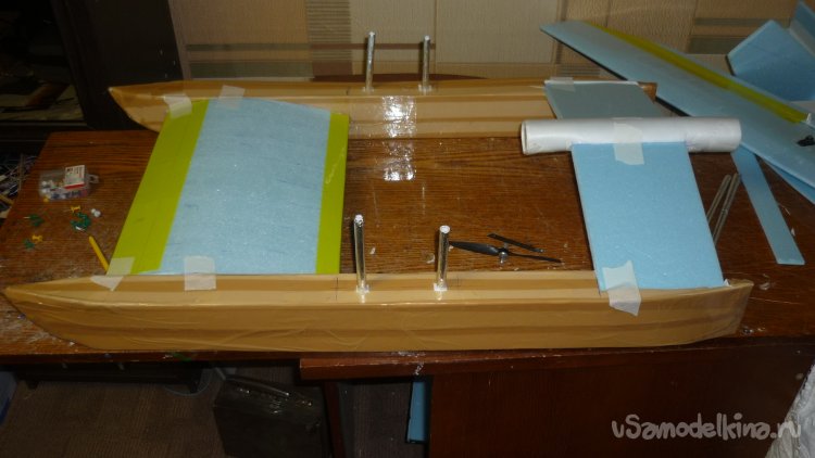 Вклеил верхнюю, внешнюю стенку поплавков.
