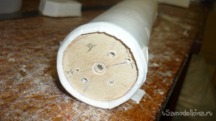 На основании, с одной стороны вклеил 3 мм. фанерный диск, для крепления мотора.