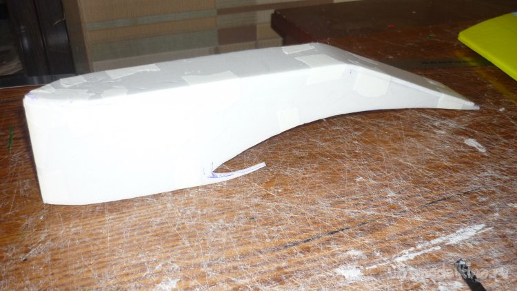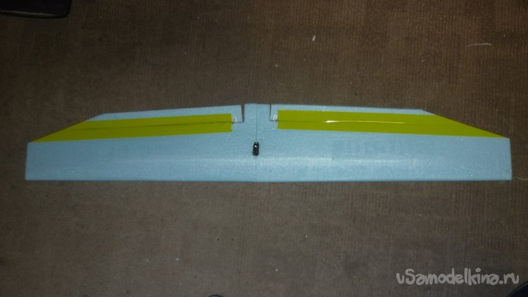 Основное, верхнее, несущее крыло оставил почти без изменений. Срезал углы на концах крыльев. Поменял цвет скотча.