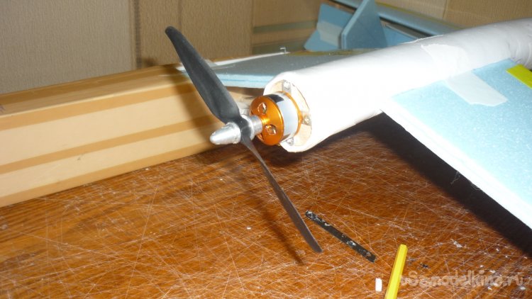 Не буду отнимать у вас время на показ установки сервомашинок управления элеронами и рулём высоты.