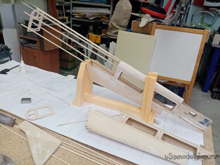 Героически перерыв интернет не нашел подробных чертежей для сборки недостающих частей модели. Товарищи по борьбе одолжили на некоторое время целый фюзеляж подобной пилотажки.