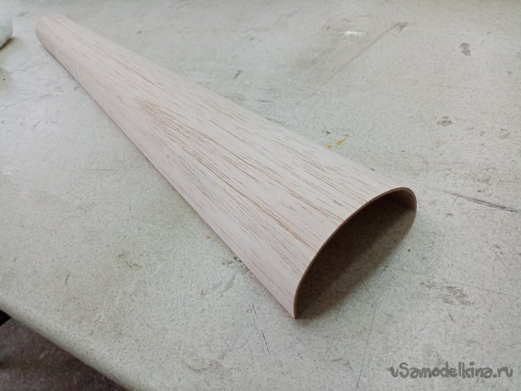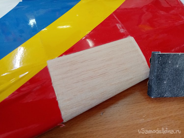 Приклеиваю дополнительный кусочек бальзы на переднюю кромку и отрабатываю шкуркой.