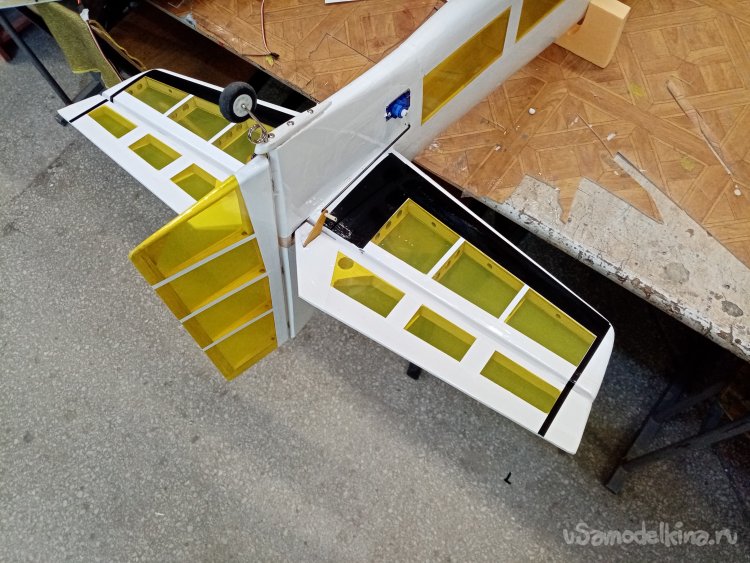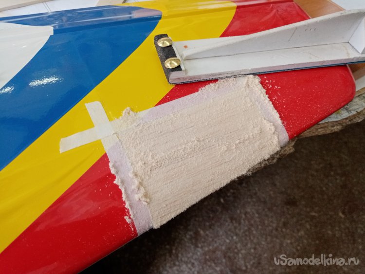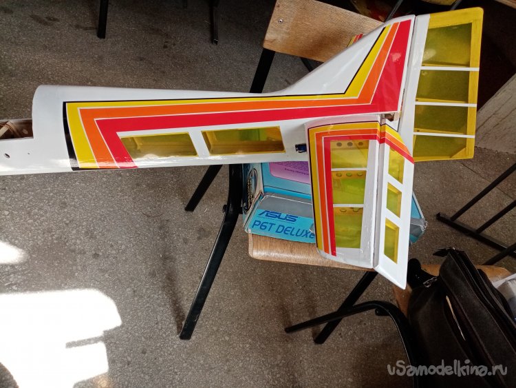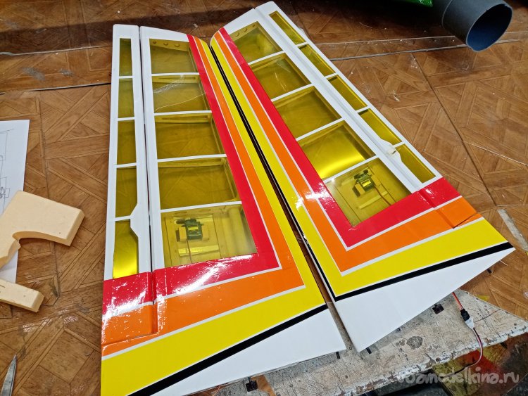 Снимаю пленку с руля высоты. Решил в корне изменить ливрею модели.