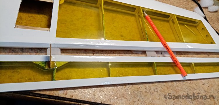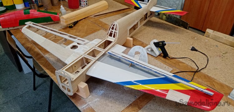 Фюзеляж бодро сохнет. Перехожу к реставрации крыльев. Подрезаю осколки.