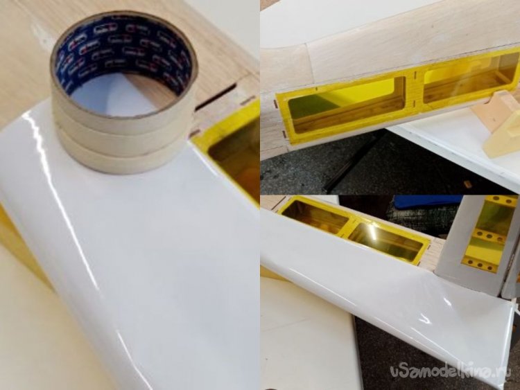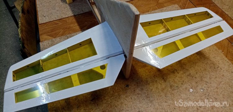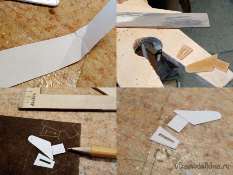 Из тонкой авиационной фанеры выпиливаю люки для установки сервоприводов. Все детальки склеиваю на эпоксидке.