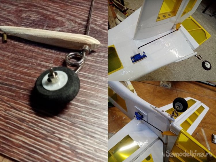 Хвостовое колесико на пружинке и сервоприводы на рудер, элеватор.