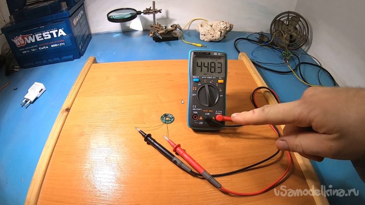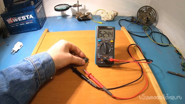 Первое, что сделал, это прозвонил такой элемент в режиме проверки сопротивления. Так вот, можно выбрать любые две ноги, между ними будет одинаковое сопротивление около 350-450 Ом. А вот если поднести к элементу магнит, сопротивление увеличивается уже на около 100 Ом, в зависимости от мощности магнита.