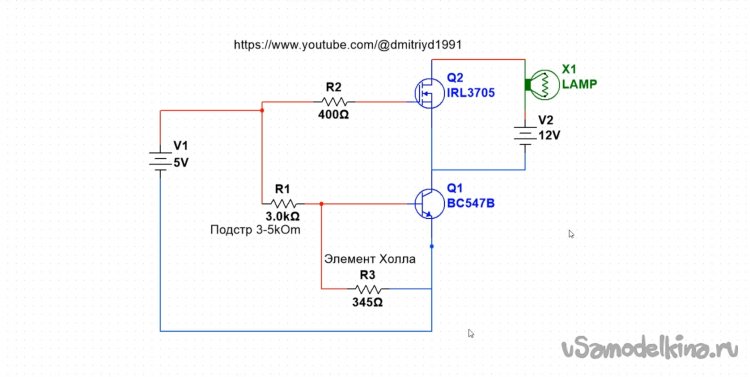 Когда появляется магнитное поле, сопротивление датчика увеличивается и на базу начинает проходить необходимый ток открытия транзистора.