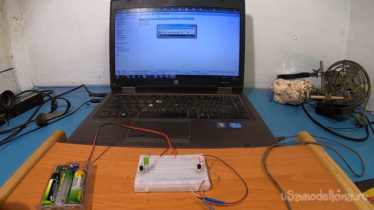 Таким образом, если самоделка подключается к выходу наушников и поступает звуковой сигнал, светодиоды мигают. Можно использовать выход для колонок, но там «громкость» слабее.