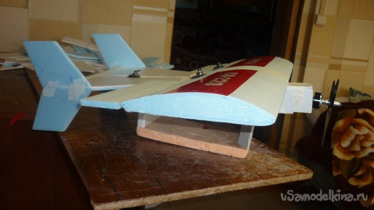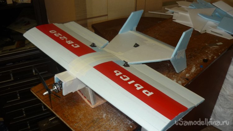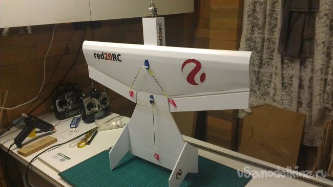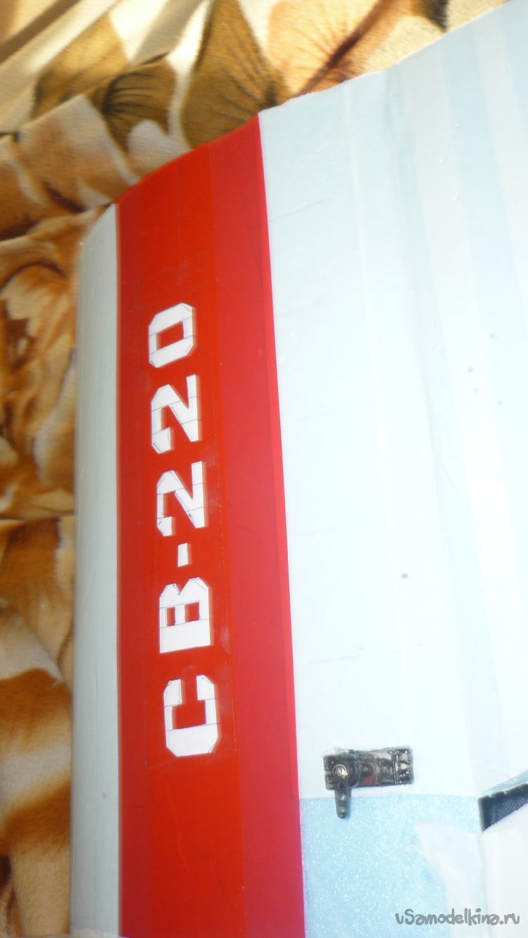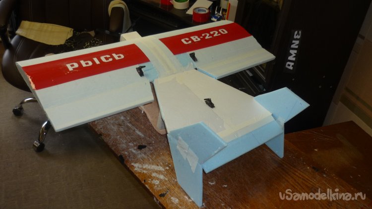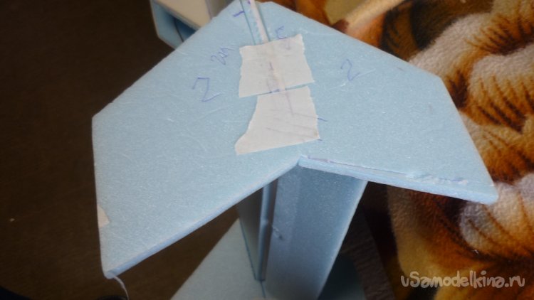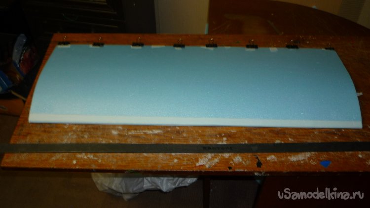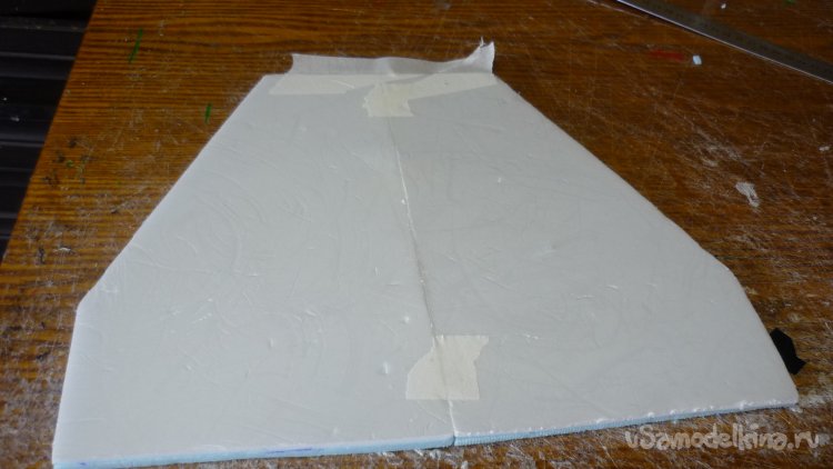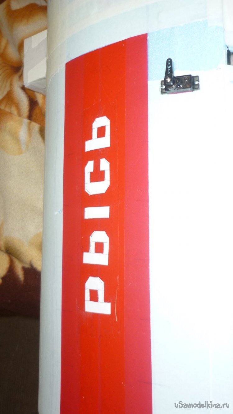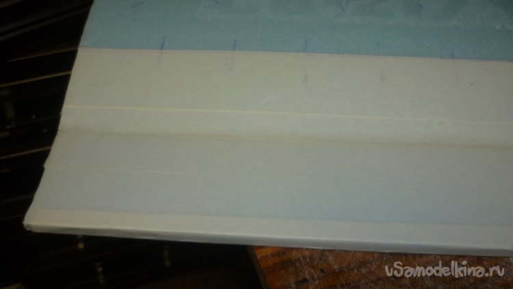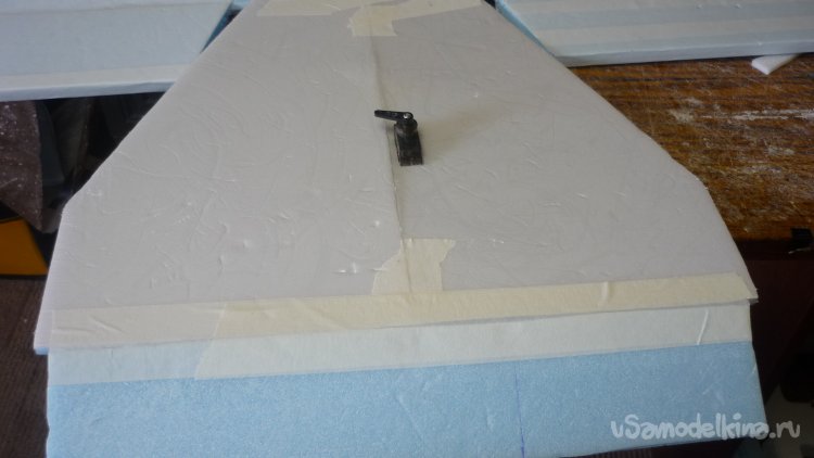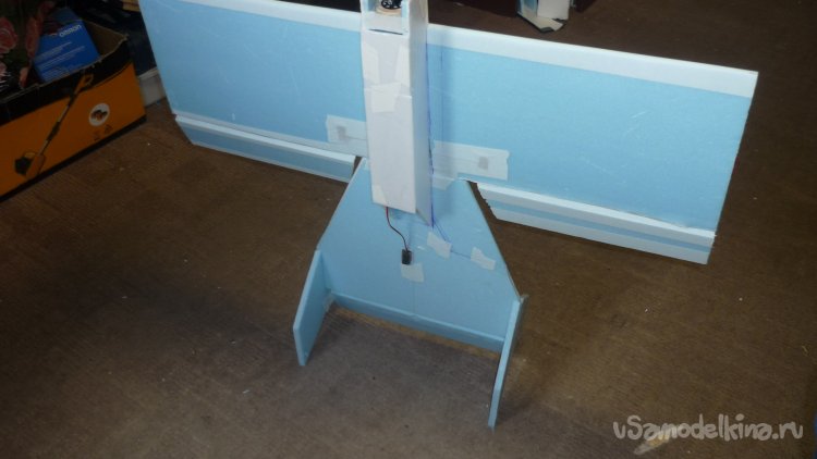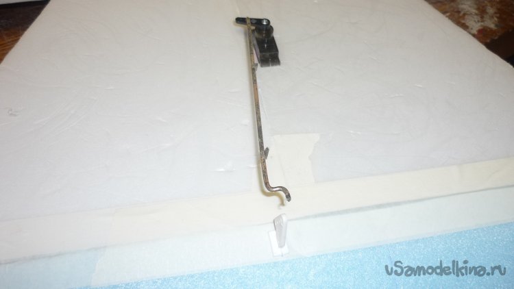 На бумажный малярный скотч навешиваю руль высоты.