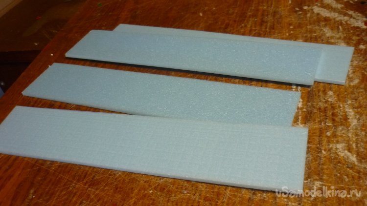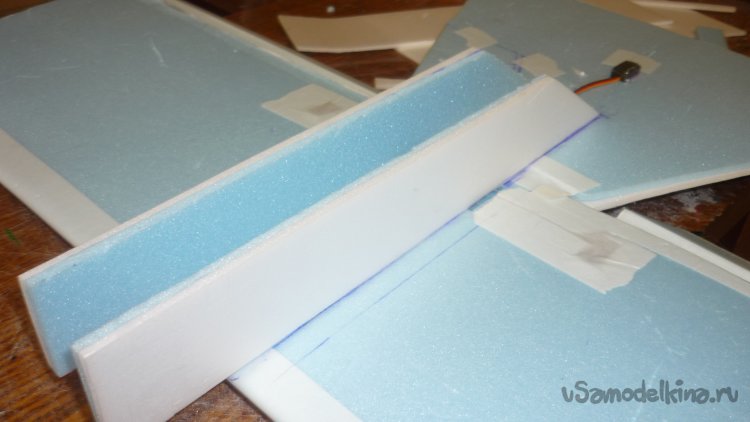 Из подложки вырезаю заготовки для элеронов. Они склеиваются в два слоя.
