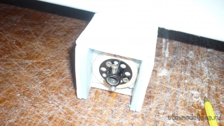 Сервомашинки перед установкой, обтягиваю полоской из двухстороннего скотча, вставляю в заготовленные отверстия и фиксирую клеем.