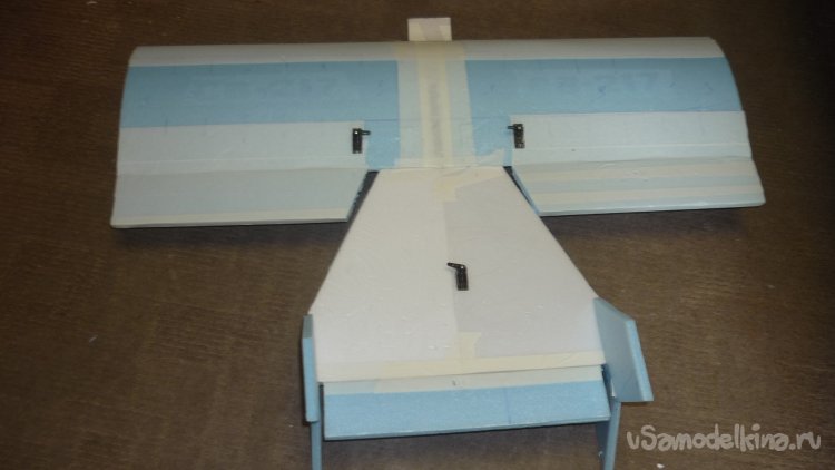 Элероны навешиваю на бумажный, малярный скотч.