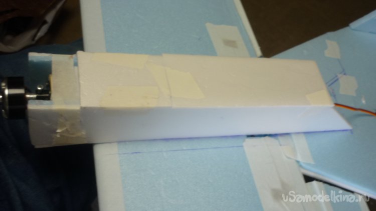 Нижняя стенка на фюзеляж фиксируется бумажным скотчем.