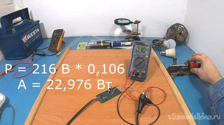 В завершении замеряем силу тока, которая идет на паяльник и в зависимости от напряжения можно понять, какая мощность идет на паяльник.
