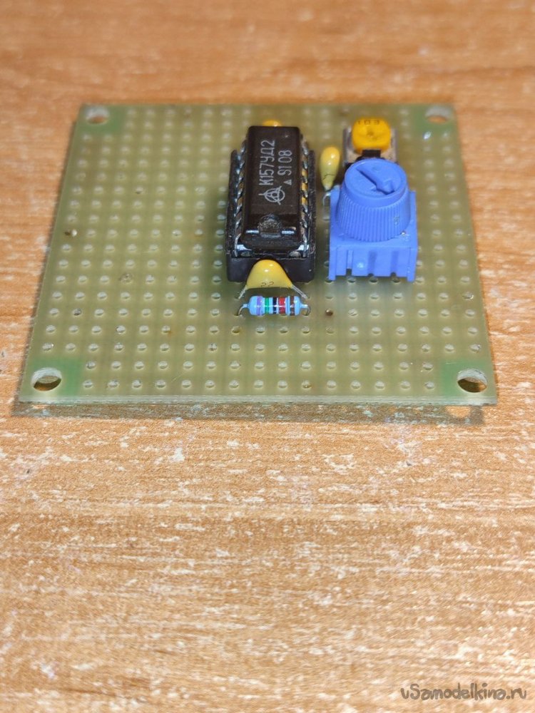 Второй блок состоит на основе элемента ОР2, состоит из делителя напряжение резистора R1 на 220кОм и подстроечного резистора R2 на 20кОм, который так же имеет ещё один резистор R3 на 10кОм для ограничение значение тока и напряжение делителя, который подключён к инвертирующему входу и выходу операционного усилителя.