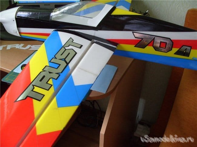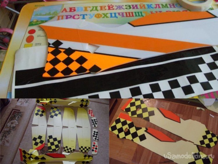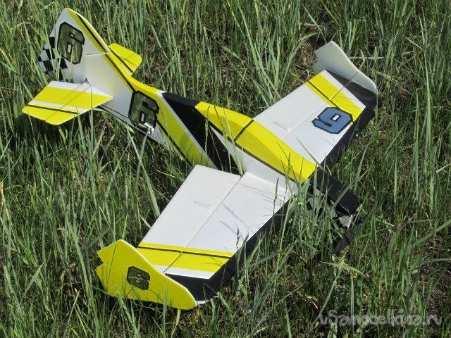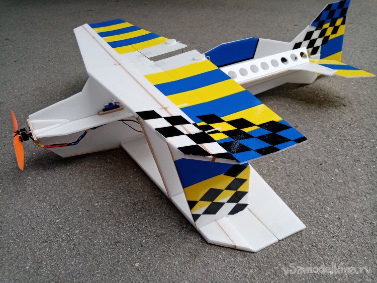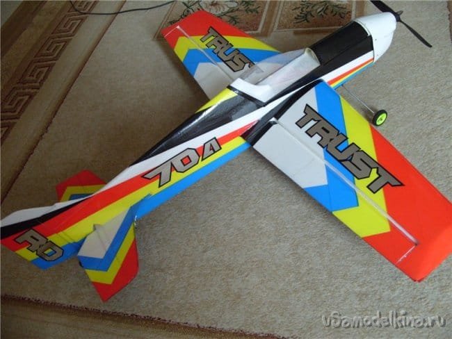 Разукрашенная в пух и прах модель пилотажки из пенопласта.