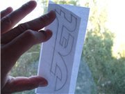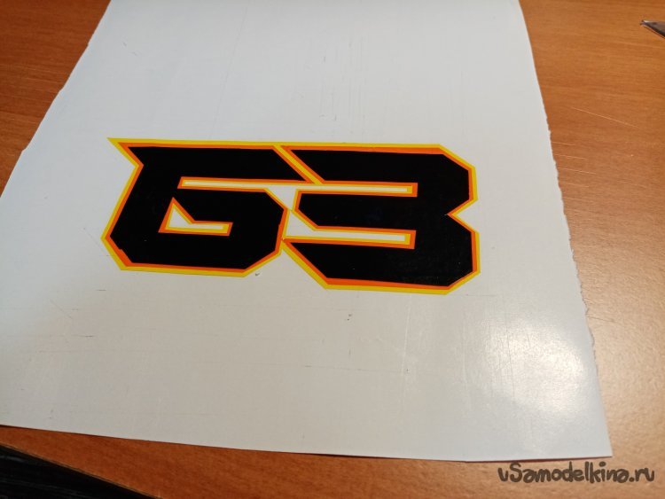 Как образец. Фотографирую логотип с нужным наклоном. Фото переношу в ПК и на экране обвожу карандашом на кальку. Затем на подложку приклеиваю скотч блестящий, сверху кальку с текстом. Прорезаю весь бутерброд с помощью треугольного ножа для творчества. Немного потренировавшись, научитесь чувствовать, когда лезвие прорезает кальку и упирается в пластик бумажной подложки. Затем аккуратно удаляю фон. Остается только блестящая надпись. Переношу буквы при помощи переносной пленки на черный скотч. Обрезаю по контуру создавая эффект тени. И заключительный этап. Приклеиваю на квадрокоптер.