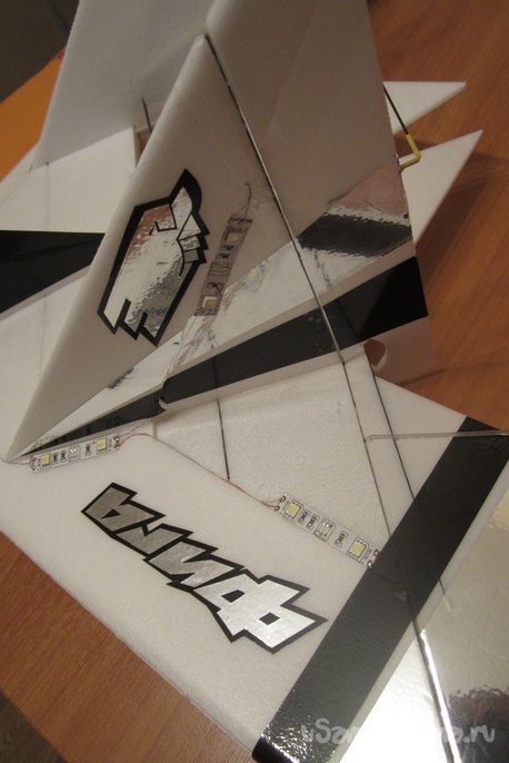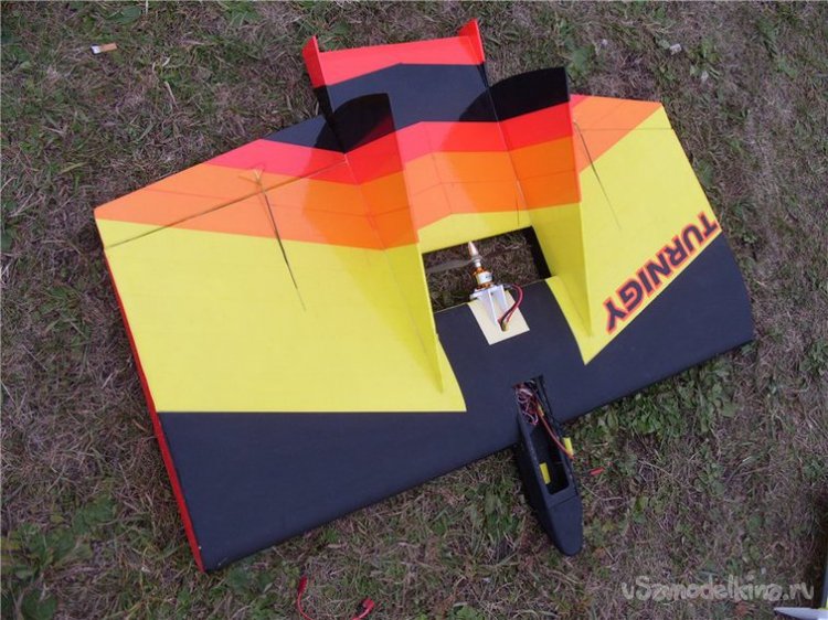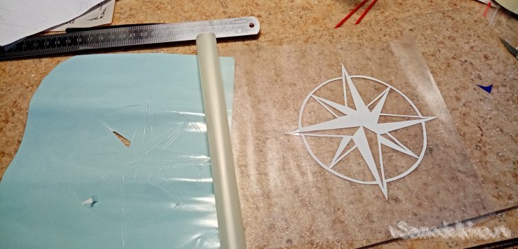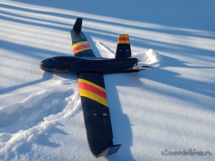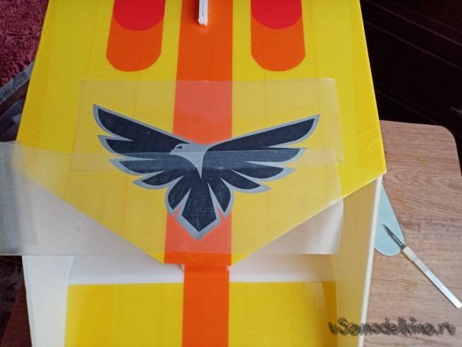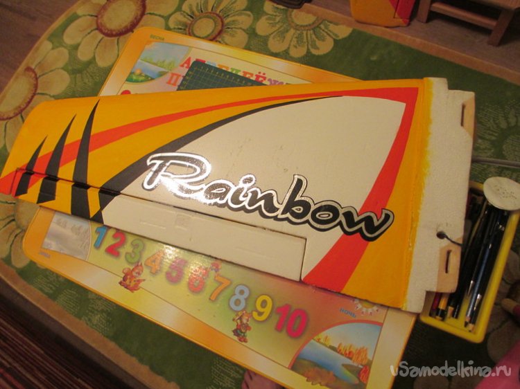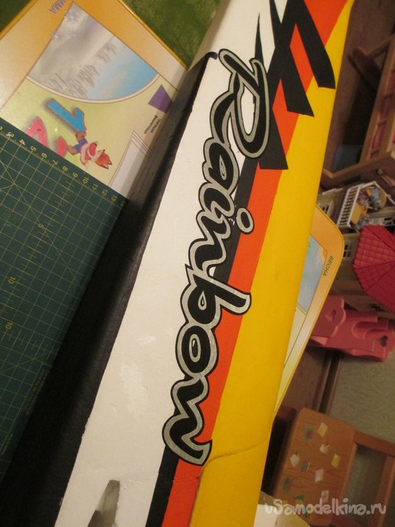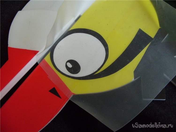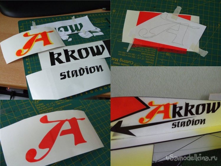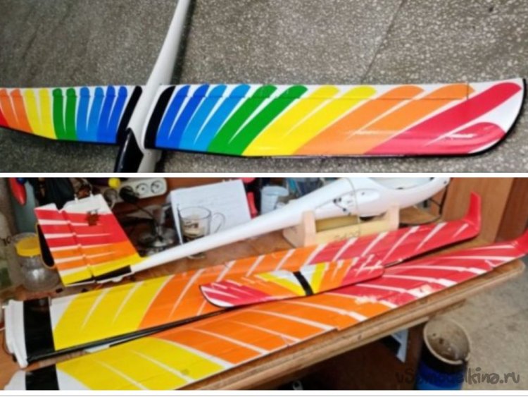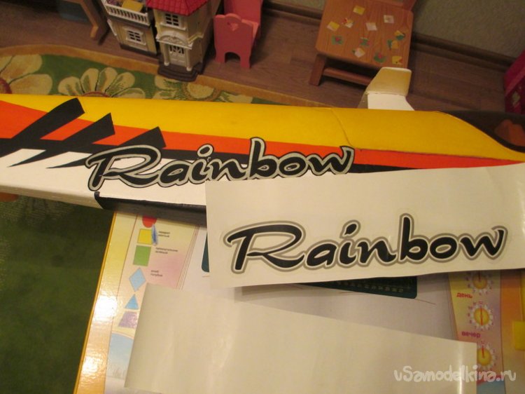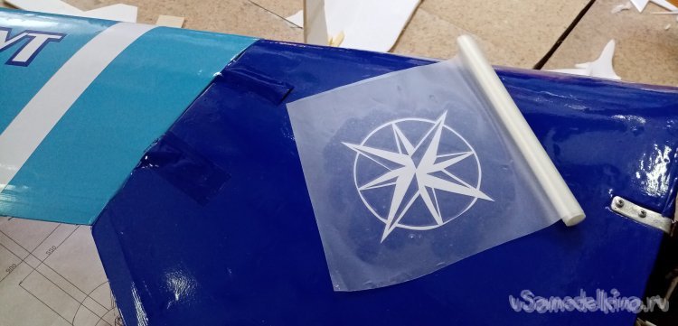 Такая же ситуация вполне применима при работе с рекламной пленкой оракал. Декорировал надписями и изображениями большое летающее крыло.
