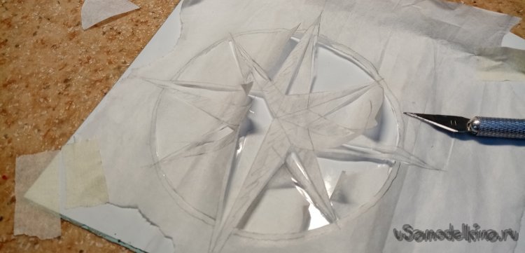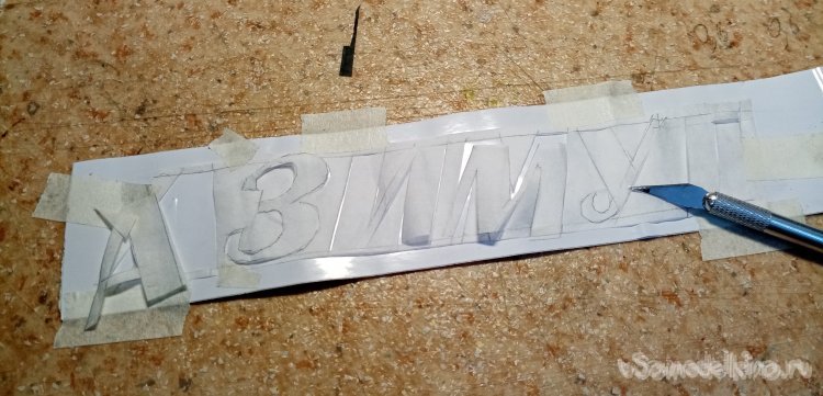Как вариант. Нарисовал несколько букв на бумаге. У окна перевел на кальку и затем вырезал из скотча.