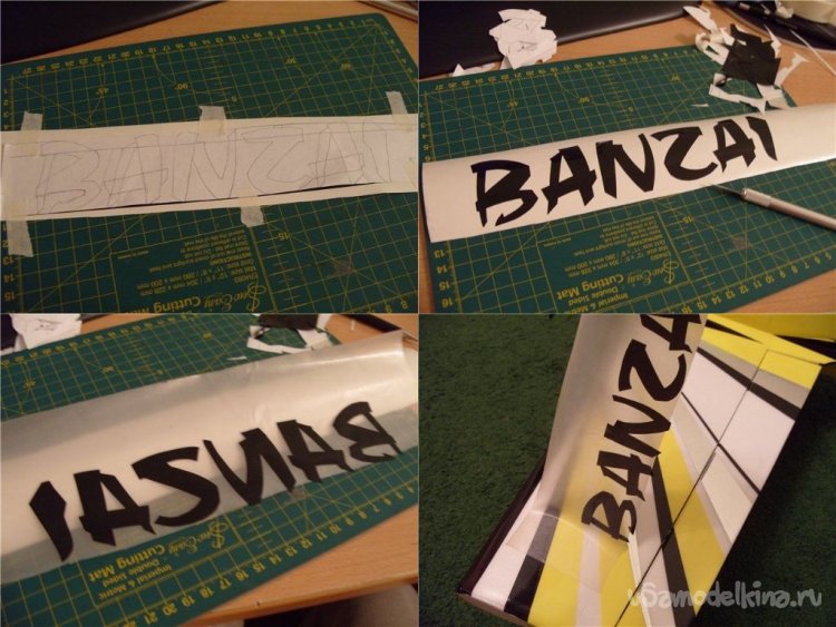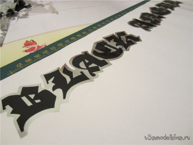 Эта надпись набрана из отдельных букв с книги по шрифтам. Технология наклейки на модель без изменений.