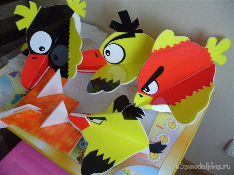 Исполняю глазки на модели птичек. И сами оклеены цветным скотчем.