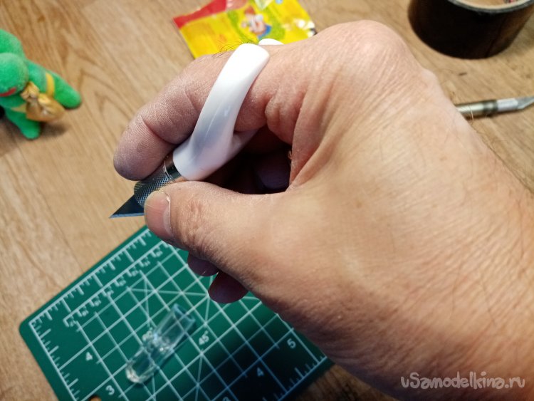 Можно резать и кусочком лезвия для бритья. Его можно просто резать обыкновенными ножницами. Если кончик затупится, просто отрезаем немного.
