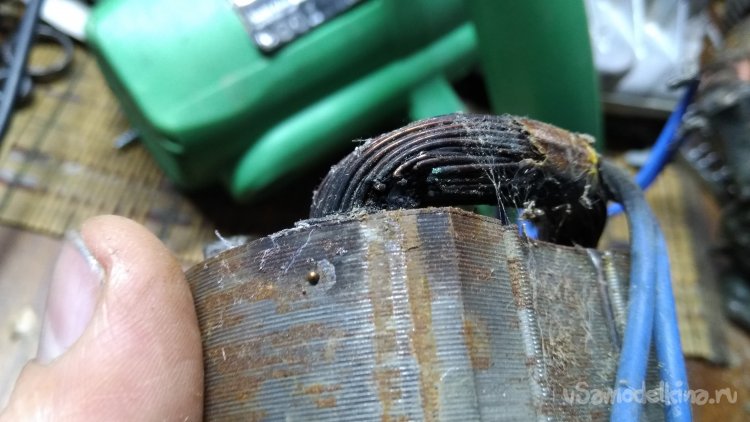 Обмотку сгоревшую срубать зубилом не стал, простучал молотком и вытащил из пазов магнитопровода.
