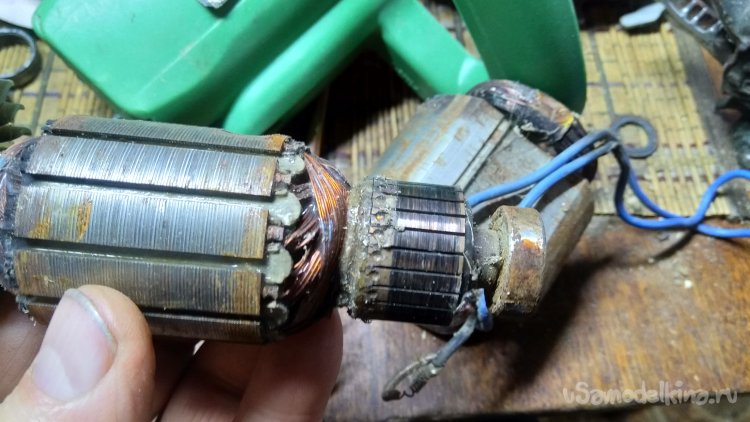 Якорь вроде тоже цел, обычно сгорает или одно или другое, сразу и обмотки и якорь чтобы сгорели, такого не встречал.