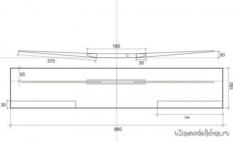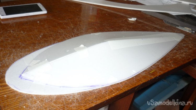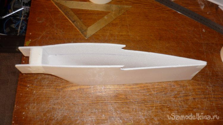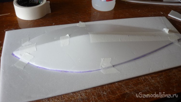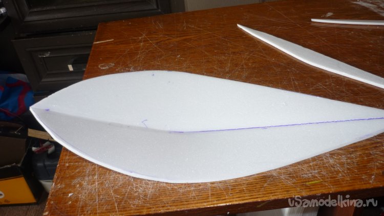 Прежде , чем начать вырезать боковые стенки фюзеляжа, делаю днище поплавка.