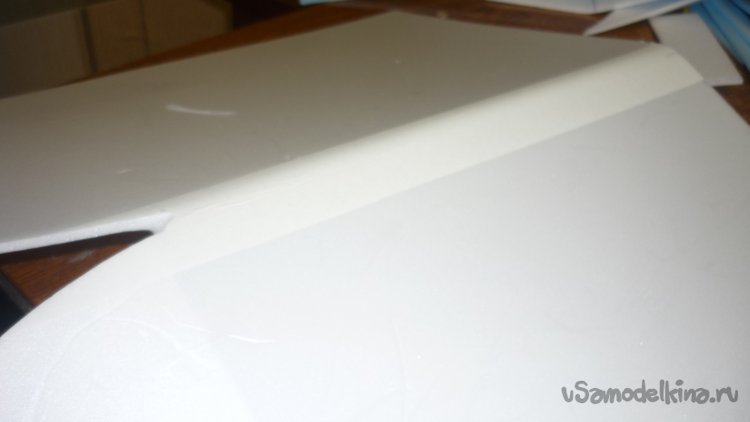 Вырезаю две заготовки и склеиваю. Место стыка проклеиваю малярным, бумажным скотчем.