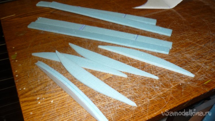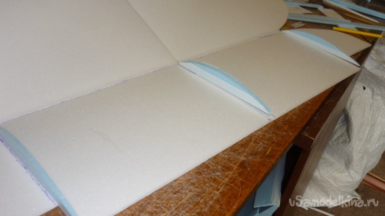Стойки, на которых будет крепиться канард, делаю из трёх слоёв. Один слой подложка под ламинат и два слоя потолочки. Для прочности.