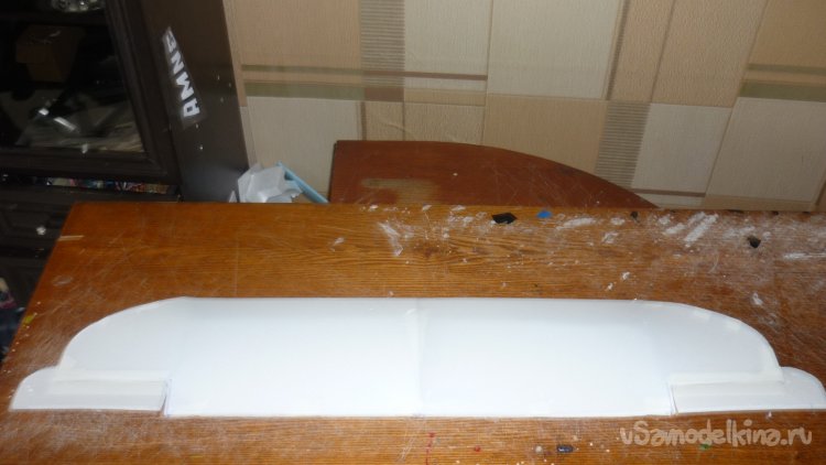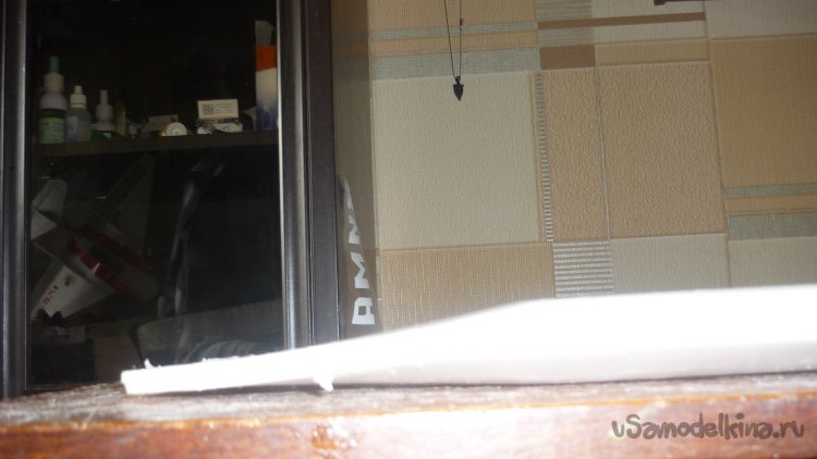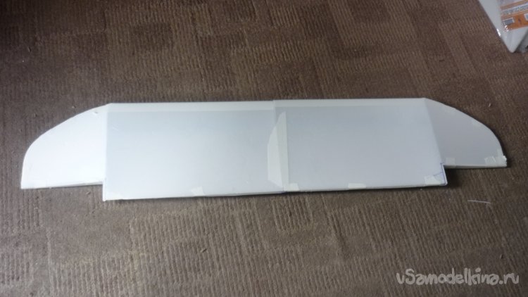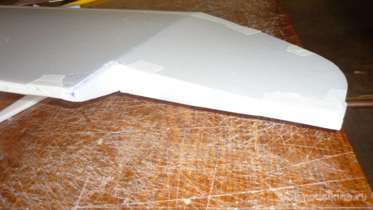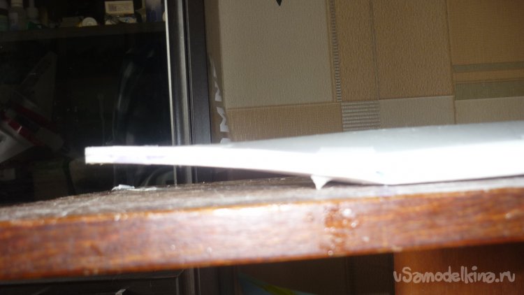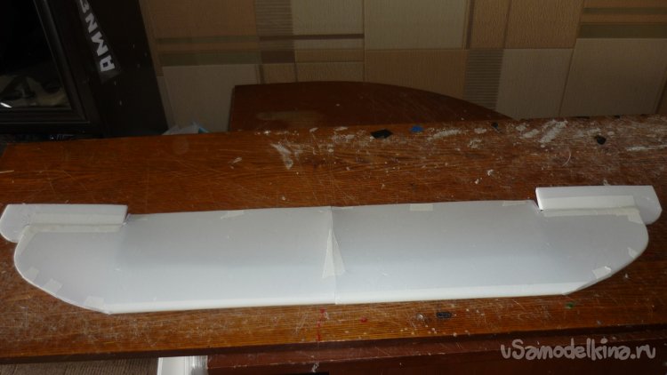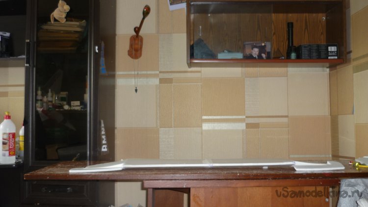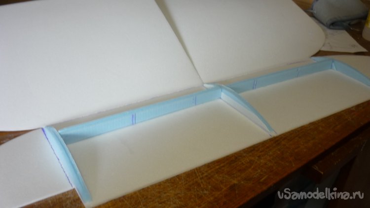 Вклеиваю кусочки потолочки в местах установки элеронов.