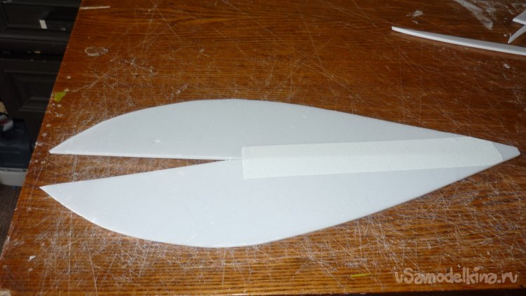 Каждая половина крыла делается из одного куска потолочки. По линии сгиба проклеиваю бумажным , малярным скотчем.
