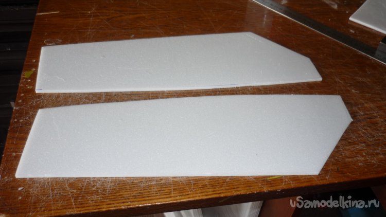 Вырезал два слоя из потолочки заготовки для канарда с рулём высоты.