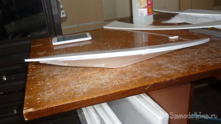 Сверху вклеиваю палубу – внешнюю обшивку поплавка.