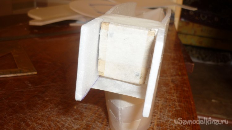 Вырезал кусочек плотного пенопласта от упаковки и кусочек 3 мм фанеры