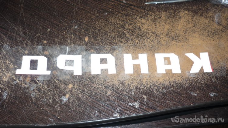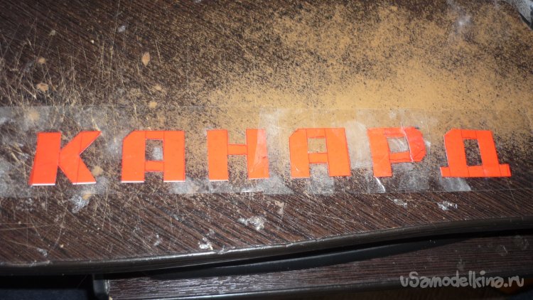 Отрезаю размеченные буквы, обтянутые скотчем.