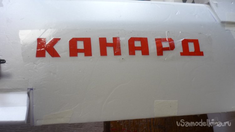 Канард, вместе со стойками монтирую на палубу поплавка в носовой части модели.