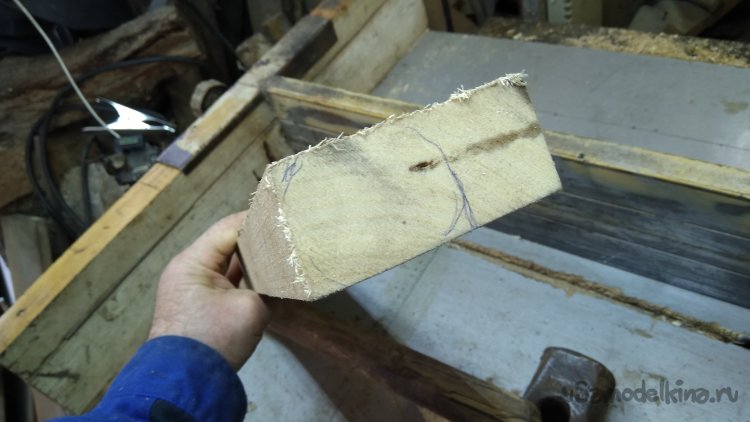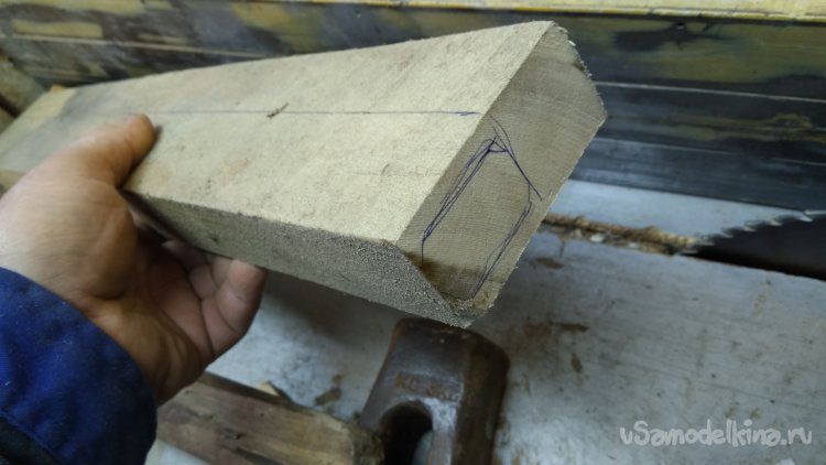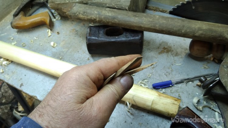 Случайно пара досочек из берёзы нашлась. Так-то у нас берёза не растёт. Редко, и то если кто-то привезёт саженец. Клинья сделал из дуба, забил на клее.