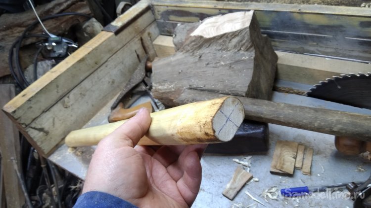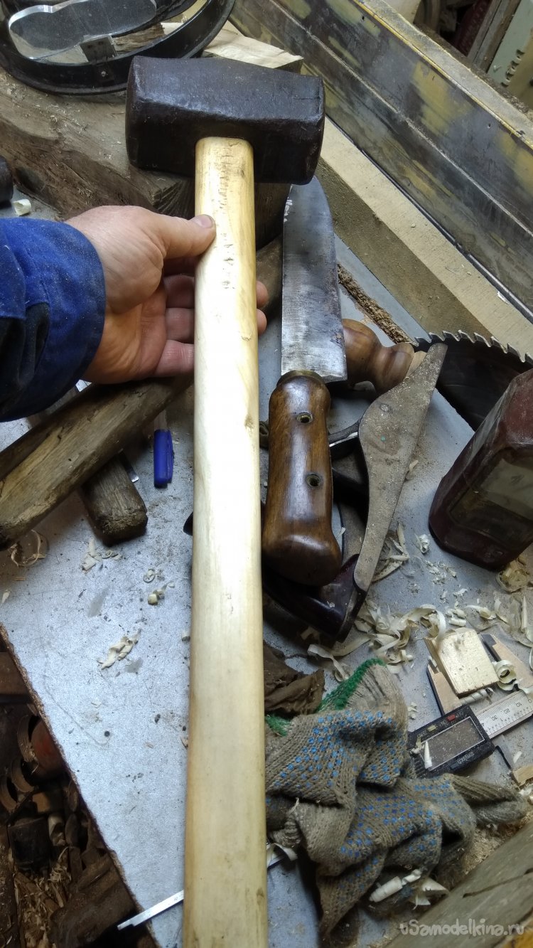 Хочу добавить, после насаживания кувалды или молотка, ну как это обычно делается, путём простукивания рукояткой об деревянную колоду или что-то массивное, желательно отпилить пару-тройку сантиметров от конца рукоятки которой стучали. Стучать ведь сильно приходится, молоток или кувалда по инерции под собственным весом насаживается. Там зачастую трещины образуются, ну и чтобы они дальше не пошли, отпилить повреждённые участки и фаски снять чтоб не цепляться и не поцарапаться.