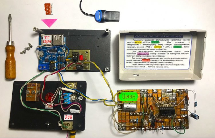 Если на TF-карту записать только один очень длинный (несколько часов) трек, то можно обойтись и без УАМП. Однако в этом случае для разных ситуаций потребуется много карт! К тому же, если доступ к TF-карте требует нескольких действий по разбору корпуса, то лучше уж изготовить УАМП.
