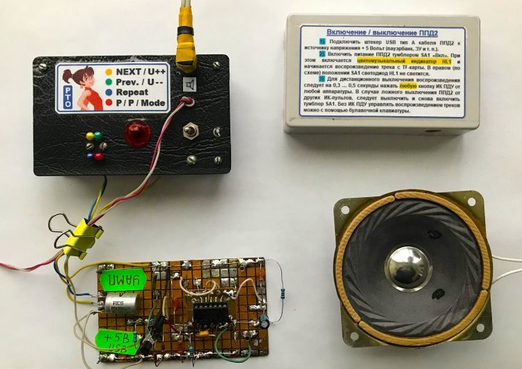 В предлагаемой статье в качестве носителя звуковой информации используется TF-карта, с объёмом памяти 16 ГБ. ППД2 поддерживает музыкальный формат MP3.